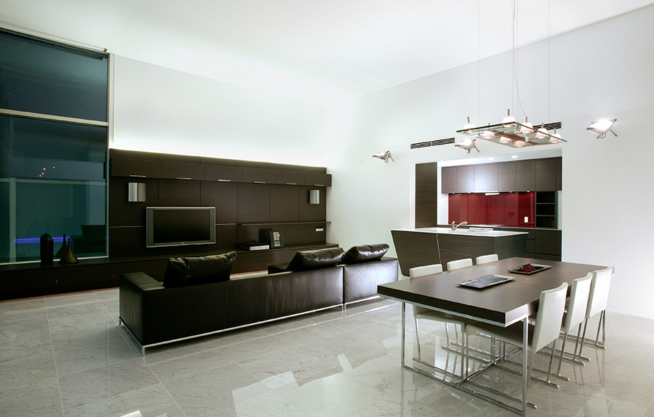 モダンな雰囲気のある大型住宅のインテリアと照明を担当させていただきました。