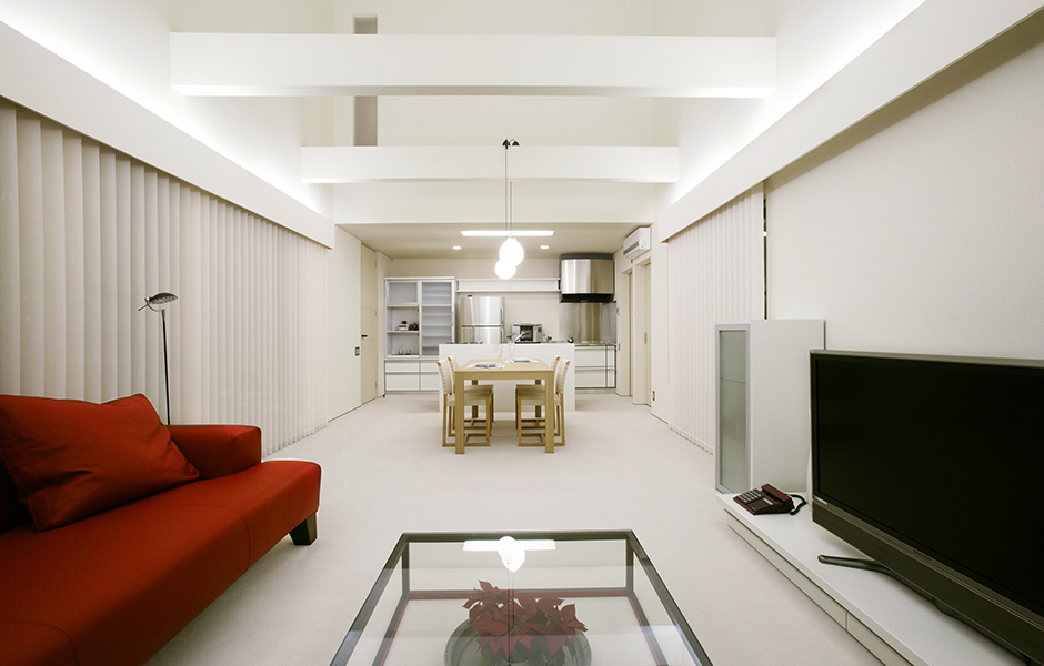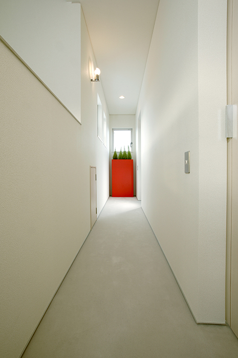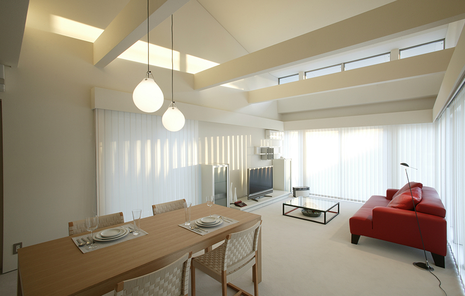 お客様好みのモダンな雰囲気をベースに、トイレとお風呂以外のすべての床を、白をメインにしたカーペット敷きでおつくりしました。