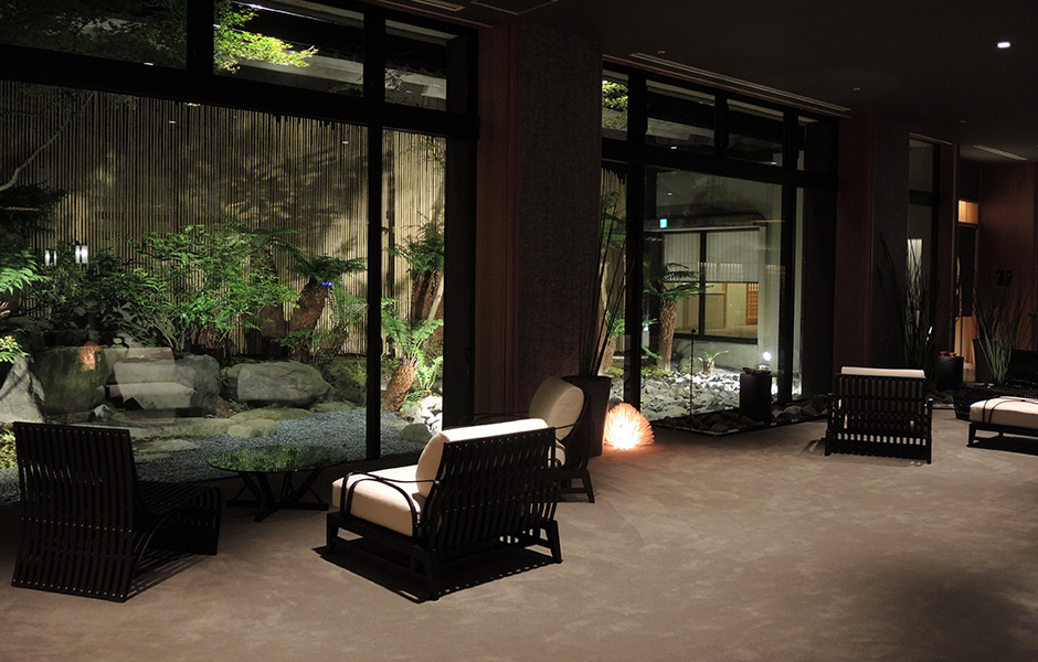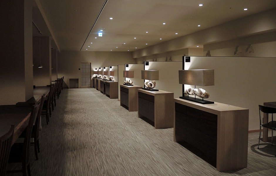 「美術館に泊る宿」というコンセプトのもと、館内は漆工芸家 角偉三郎の作品をはじめとする地元の伝統工芸品で彩られる大人の空間に仕上げました。